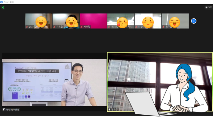 일반적 강의 형태도 있고, Q&A 대담 형식, 가상 인터뷰, 애니메이션, 팟캐스트 등등 여러 시도를 했습니다. 각자 봐야 할 영상들이 개수가 좀 있어도 매번 똑같은 걸 보지 않기 때문에 조금 더 보는 데 흥미를 느끼시는 것 같습니다.