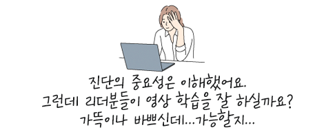 ‘마이크로 러닝 많이 해봤는데, 리더들에세 아무리 보라 그래도 안 보시더라’라는 말씀을 많이 하십니다. 네 이해합니다. 그런데 성과백신은 일반적인 마이크로 러닝과 좀 다릅니다. 앞서 설명드린 것처럼, 이건 진단을 기반으로 이뤄집니다.
